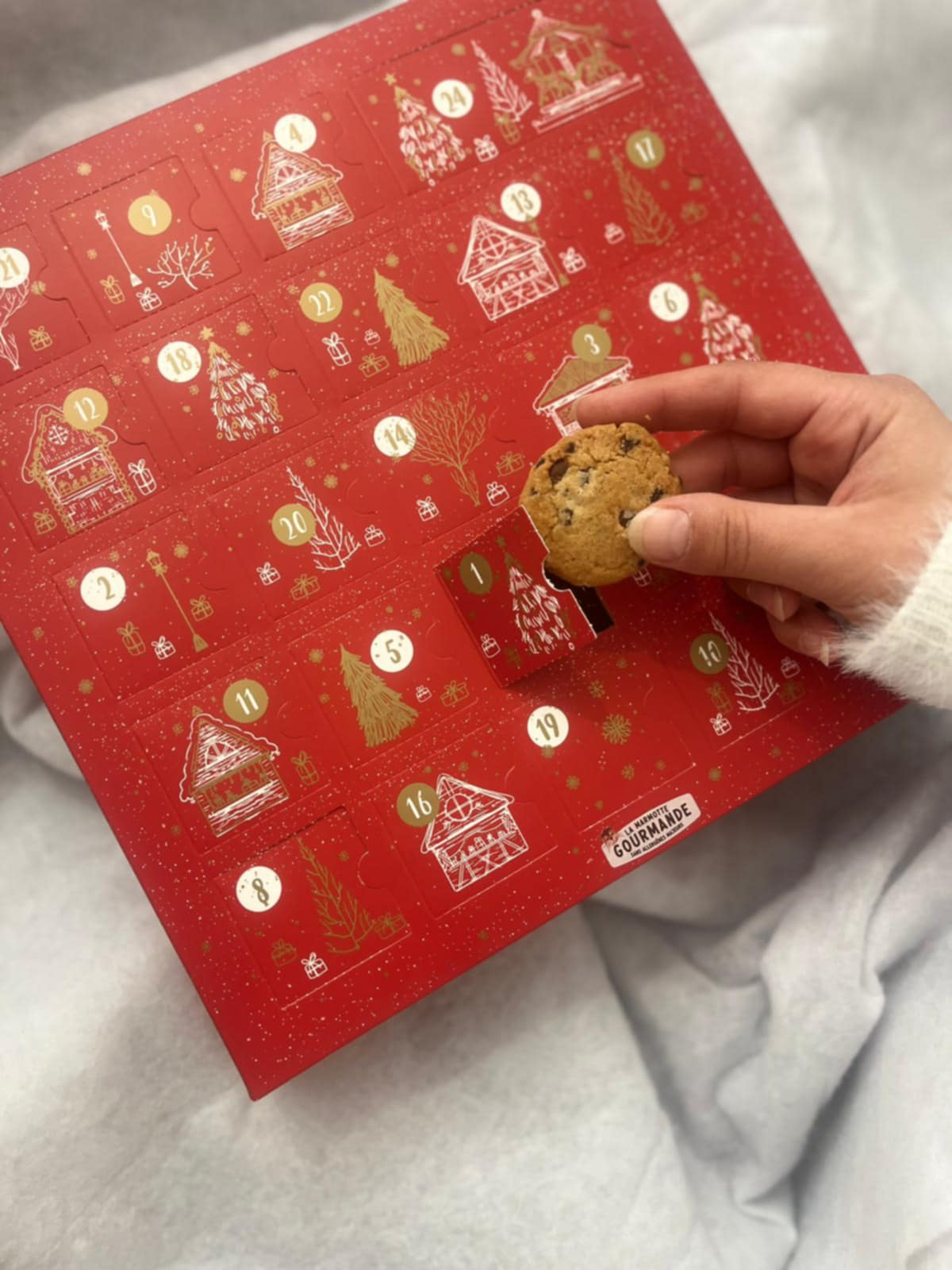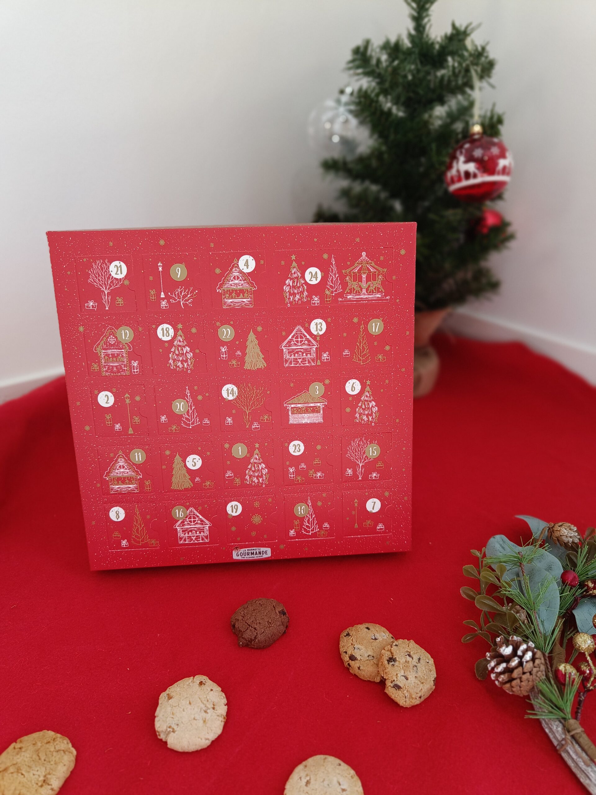 Patientez jusqu’au 25 décembre avec La Marmotte Gourmande à vos côtés ! Craquez pour notre calendrier de l’avent rempli d’un assortiment de nos cookies sans gluten vegan sans aucun allergène majeur, avec une surprise chocolatée le 24 !