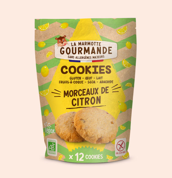 Avec des morceaux de citron fondants, les cookies citron sans gluten ni autre allergène majeur de La Marmotte Gourmande offrent un plaisir gustatif intense et rafraichissant !